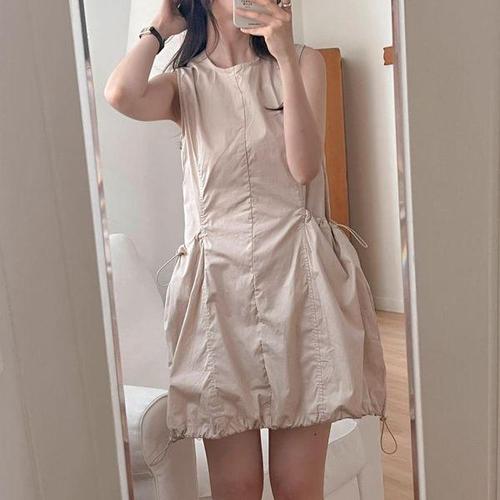 [신상오픈런]여성 투웨이 스트랩 호박색 민소매 절개 포켓 미니 드레스