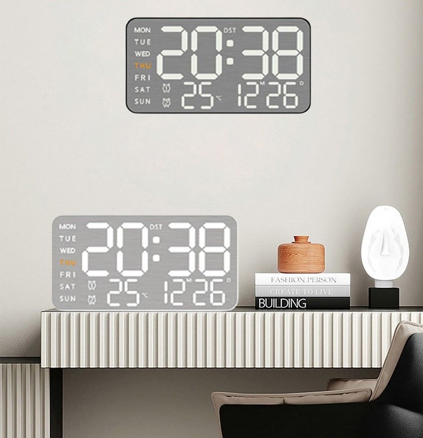 LED 인테리어 디지털 시계 탁상 벽걸이 겸용 달력 온도 숫자 알람 전자 미니 벽시계