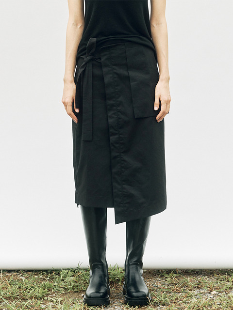 yoyoyoy여성[최초가 295000원] 애시메트릭 플리츠 미디 스커트 블랙_AJ08WNPSK02