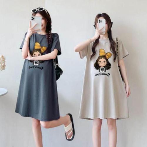 미중 여성 여름 뉴 기질 젊은 박시 날씬 양기 얇은 5부 무지 미디엄 원피스 cxcy