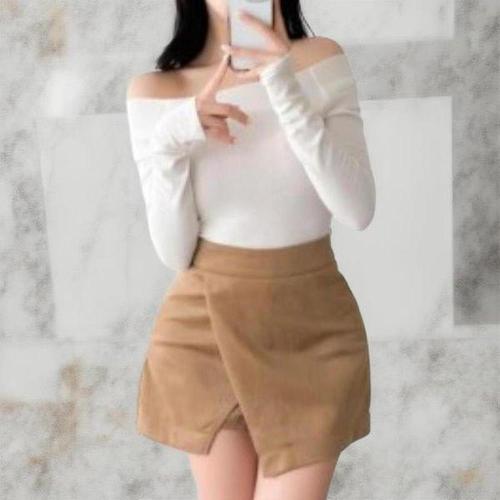 [옷자락] 여성 심플 앙고라 오프숄더 따뜻한 무지 긴팔 니트