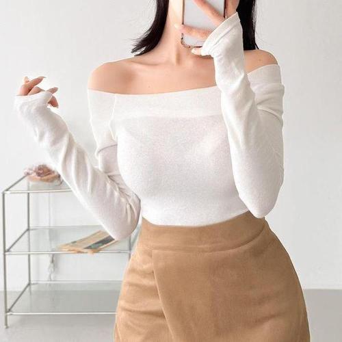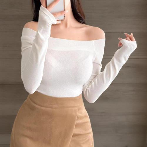 [옷자락]여성 심플 앙고라 오프숄더 따뜻한 무지 긴팔 니트