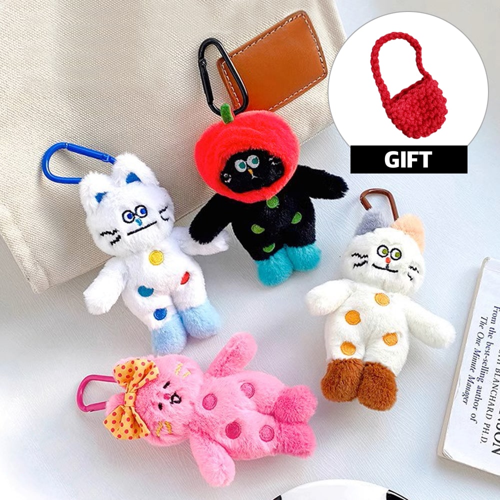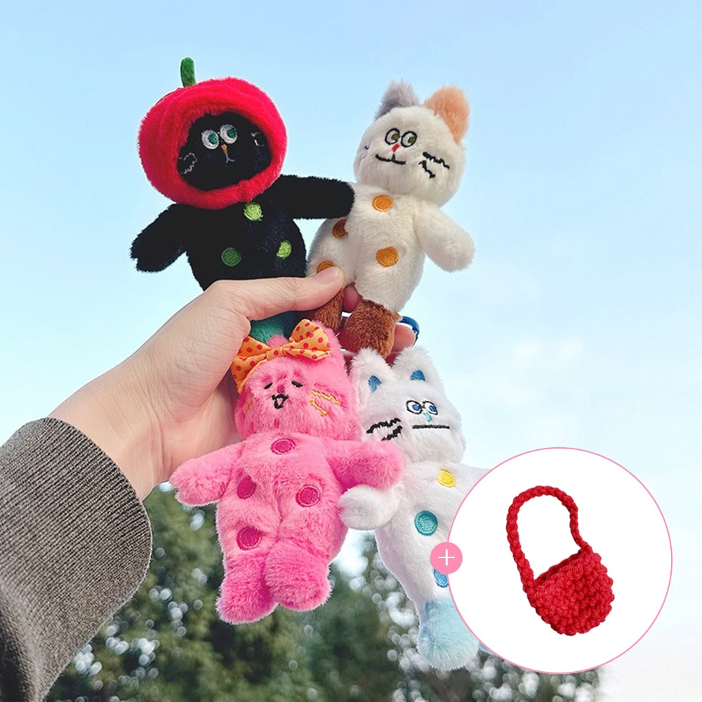 플러시 코튼 고양이 캔디 투톤 귀여운 부드러운 투톤 키체인 크루아상 플러시 키체인 체리 플러시 키체인 플러시