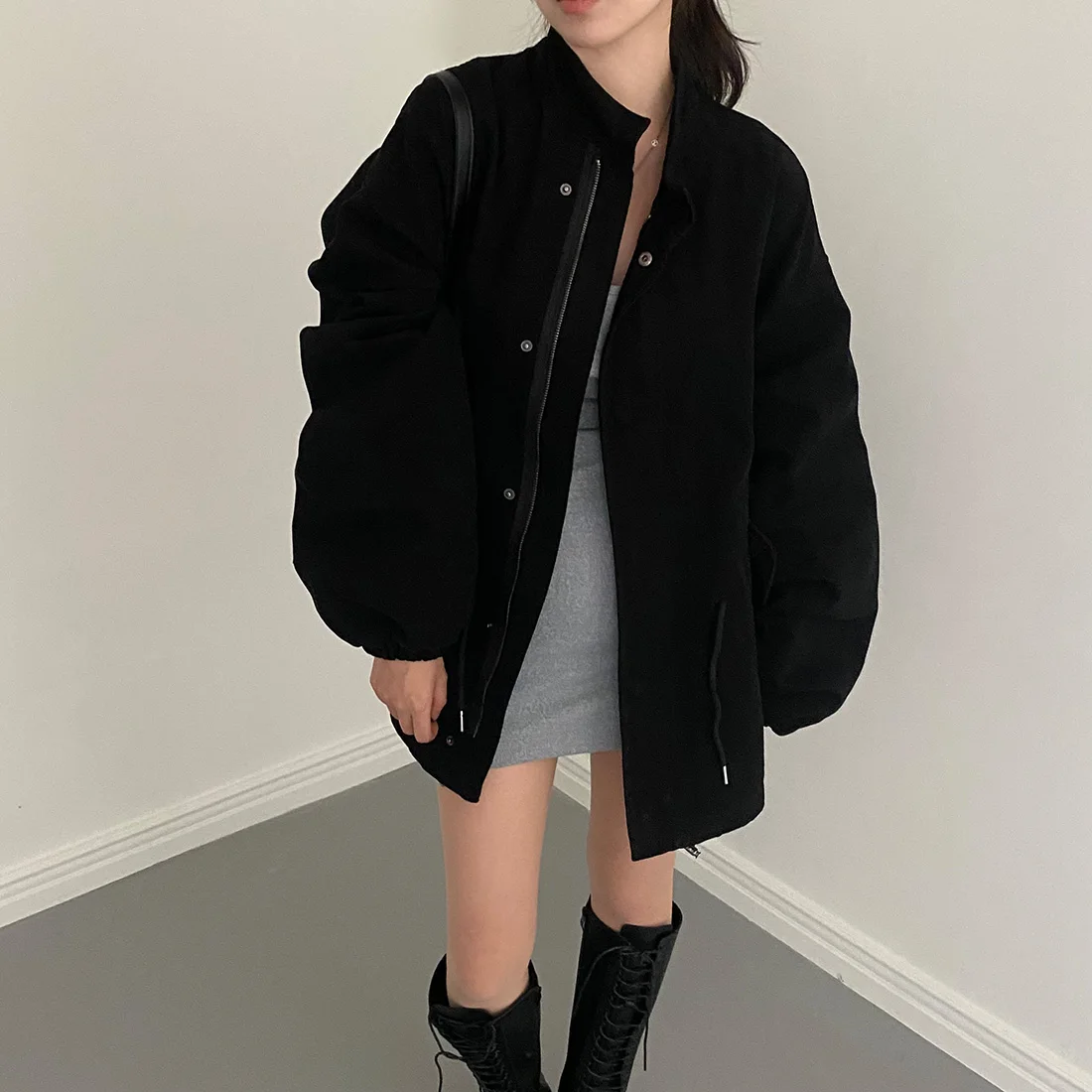 단추 업 턴 다운 칼라 코트, 빈티지 긴팔 시크 재킷, 울 루즈 블레이저, 오피스 레이디, 2023 신상 패션