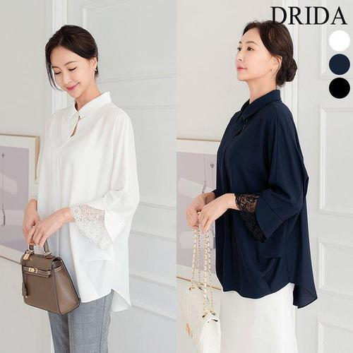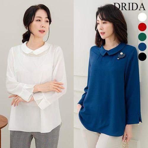 [드리다]봄 가을 여자 정장 레이스 쉬폰 빅사이즈 카라 블라우스 40-50대 중년여성 엄마옷 미시 마담 하..
