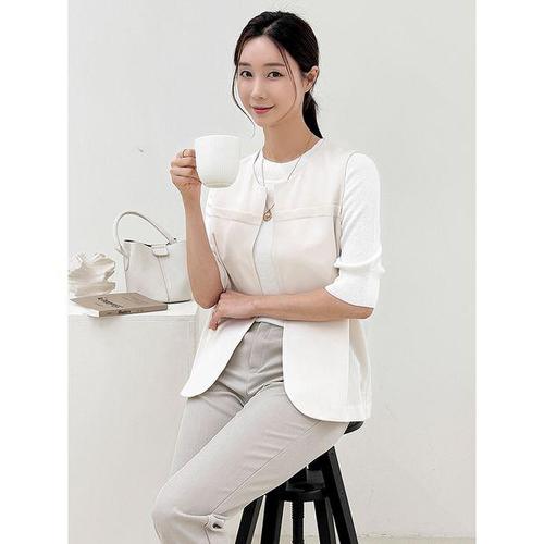 [드리다]엄마옷 여성 봄 여름 노카라 빅사이즈 미디 정장 베스트 조끼 40-50대 미시 중년여성 하객 상견..