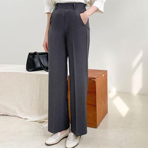 [드리다]여성 봄 롱 와이드 빅사이즈 통바지 밴딩 슬랙스 정장바지 팬츠 미시 캐주얼 출근 모임 오피스룩