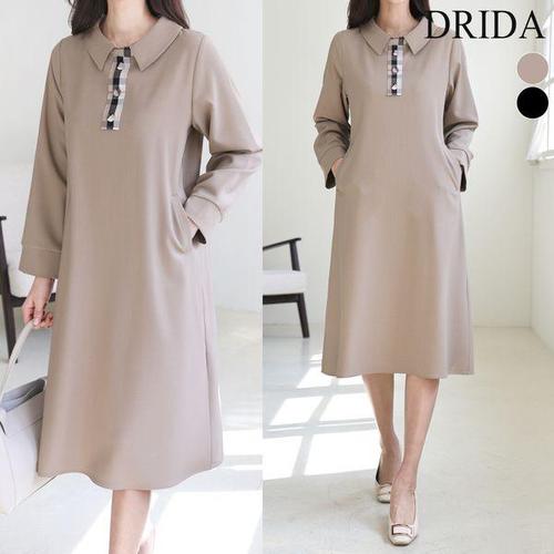 [드리다]엄마옷 여성 봄 가을 카라 체크 빅사이즈 정장 원피스 40-50대 미시 중년여성 하객 모임 상견례