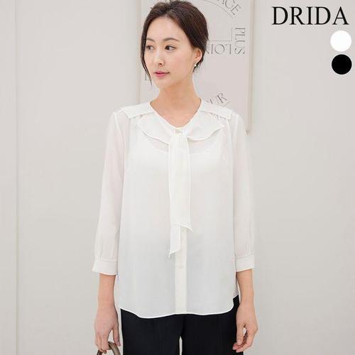 [드리다]봄 여름 여자 프릴 쉬폰 타이 장식 빅사이즈 정장 블라우스 40-50대 중년여성 엄마옷 미시 하객