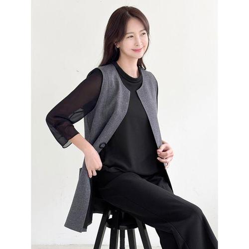 [드리다]여성 봄 가을 노카라 장식 빅사이즈 정장 롱 조끼 베스트 40-50대 미시 중년 엄마옷 하객 상견례