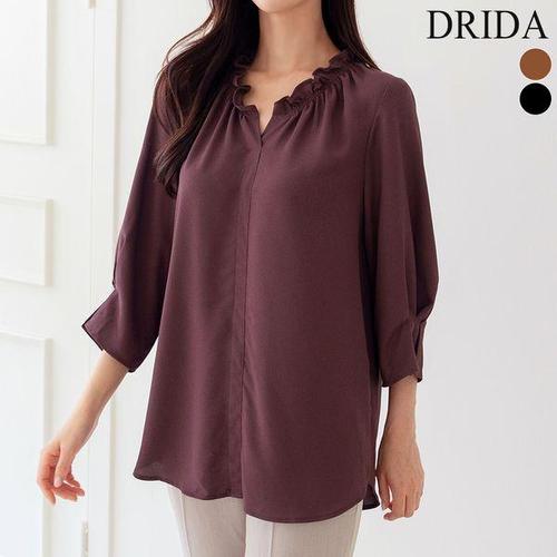 [드리다]가을 셔링 쉬폰 정장 고급 루즈핏 빅사이즈 블라우스 40-50대 중년여성 엄마옷 미시 마담 하객 ..