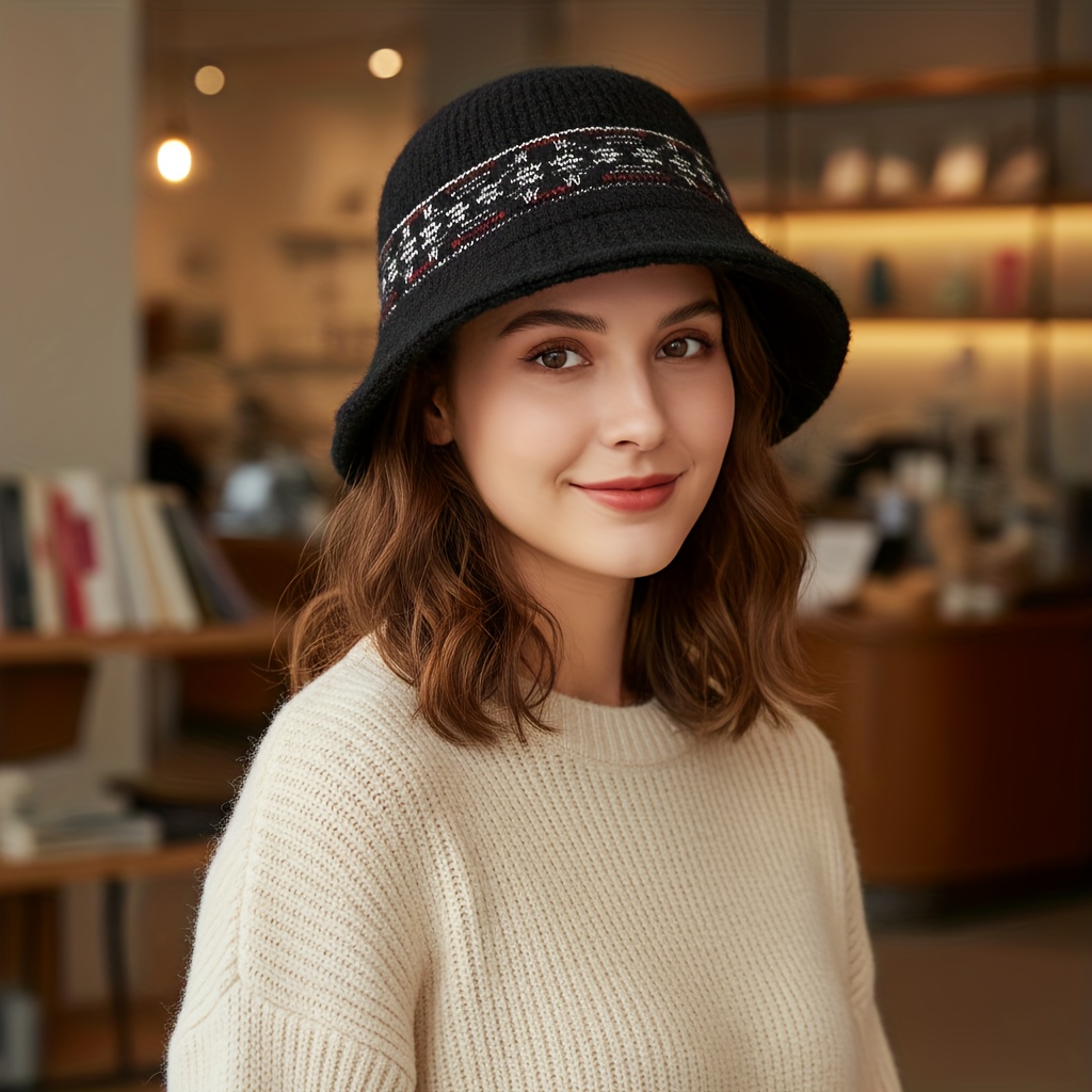 TEMU 여성용 레트로 자카드 피셔맨 버킷햇 - 따뜻한 겨울 귀 보호, 멀티컬러 (블랙/화이트/러스트/그레이/브라운) 탄력 있고 가벼운 손세탁 가능, 야외 여행, 캐주얼 & 포멀 웨어 - 모든 베이지 톤|벙거지모자