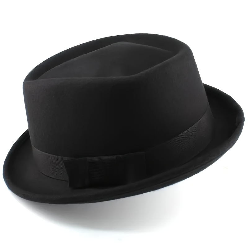 TEMU 1개 스타일리시 남성용 블랙 재즈 페도라 모자 와이드 브림 & 리본 밴드 - 친구, 가족 또는 동료를 위한 우아한 선물