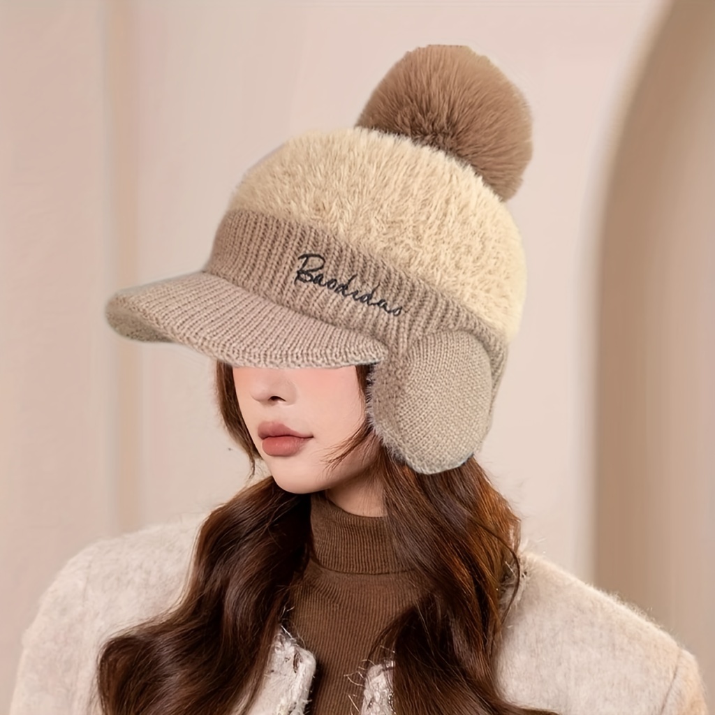 TEMU 여성용 겨울 모자 1개 - 두꺼운 기모 안감, 가볍고 스타일리시하며 조절 가능한 버클 클로저, 브라운 옵션, 캐주얼 복장에 적합, 겨울 모자 | 스타일리시 겨울 모자 | 튼튼한 모자|벙거지모자