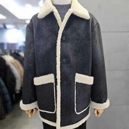 [바쏘옴므][바쏘옴므] -최소수량- WSY4UA47ABK F/W 블랙 양가죽 배색 페이크 무스탕 점퍼 (P003408038)