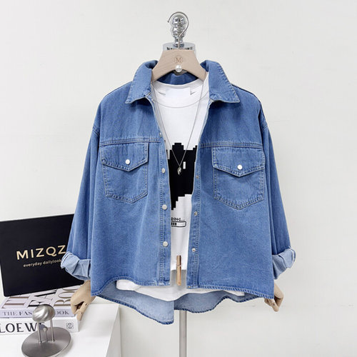 미즈큐즈 / 캐주얼 루즈핏 언발라인 데님 셔츠 청남방 2color