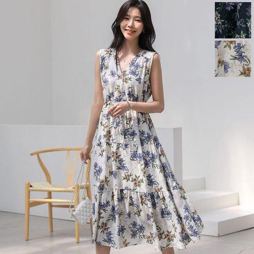 편한 끈나시 무늬 플라워 원피스 (KYR-WFFOD4P)