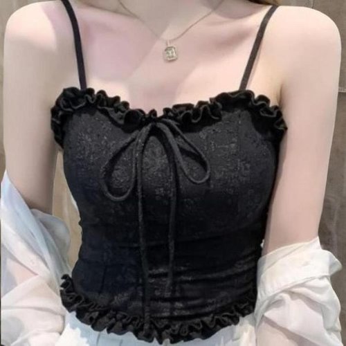 [다잇템_패션]여성 탑 슬림 끈 플라워패턴 레이스 나시