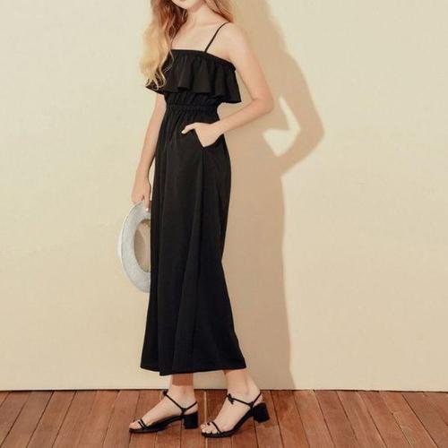 [신상오픈런]여성 프릴 디테일 셔링 끈 나시 점프수트