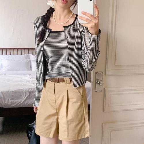 [신상오픈런]|KSD2428|스트라이프가디건 골지나시 크롭핏 봄투피스 슬리브리스_20303127_597559
