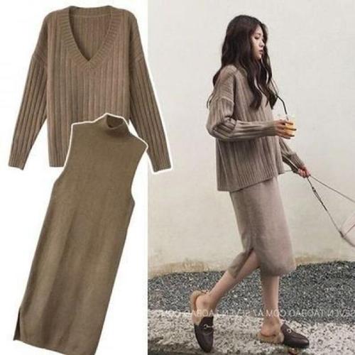 [신상오픈런]|CHD1993|링루셀 세트 여성 민소매 윈터 레이어드 투피스 스웨터_18317788_597559