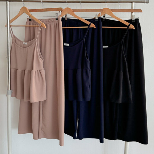 [핑크엘리제]프릴 민소매 와이드핏 팬츠 세트 페리클투피스