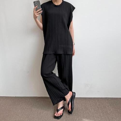 [다잇템]여자 U넥 슬리브리스 투피스 넓은 맞주름 세트 (10630190A)