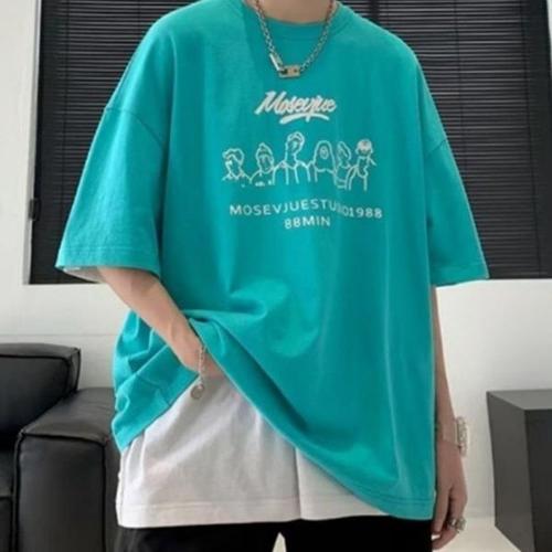 [엄지척]남성 대학생 여름 민트색 프린팅 루즈핏 오버 반팔티_20459787_667501