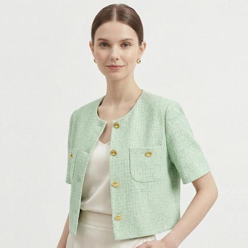 여성 노카라 금장단추 반팔 트위드 자켓 NARU-WJP-21179-민트