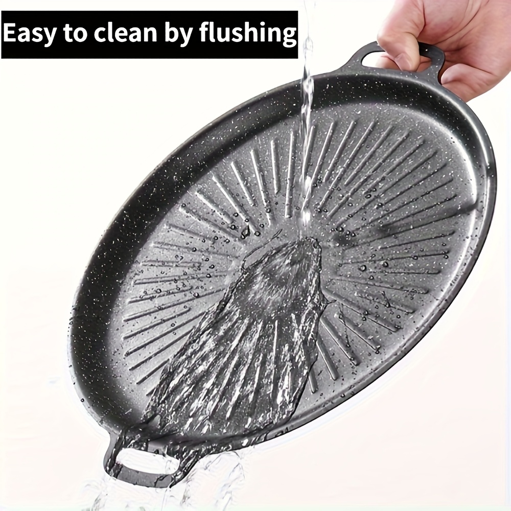 TEMU 1개 대형 헤비듀티 주철 한국식 BBQ 그릴팬 & 플랫 프라이팬 - 논스틱 블랙코팅, 균일한 열분포, 인덕션 사용 가능, 실내/야외에서 캠핑, RV, 파티, 상업적 및 가정요리에 사용하기 좋은 내구성 있는 올인원 조리기구 (튼튼한 손잡이, 긁힘방지 표면, 청소가 쉬움)