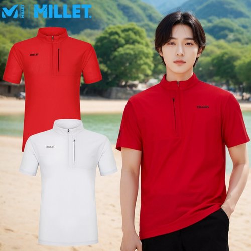 [밀레]밀레 집업티셔츠 반팔 남자 여름 냉감 쿨 기능성 유니폼 단체복 아웃도어 캠핑 트레킹_CA