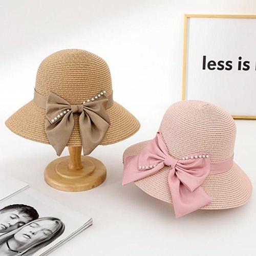 성인모자 진주리본밀짚 벙거지 여성 여자 모자 버킷햇 WFHOQ4I