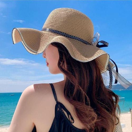 준캡 봄 여름 가을 M장식주름 벙거지 밀짚 시원한 밀짚모자 해변모자 여성 여자 모자 버킷햇