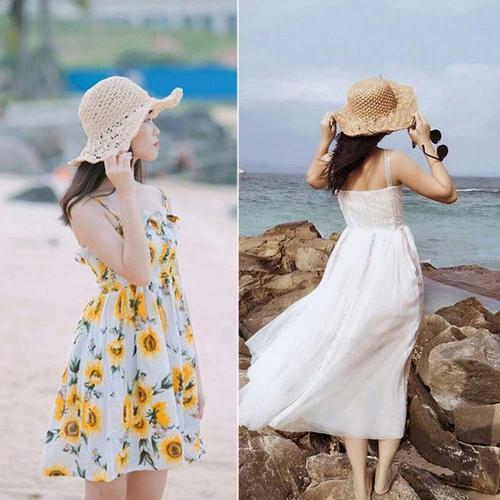 [셀럽하우스]여자 BSLN9196 해변 코디 밀짚 모자 바캉스룩 휴양지 벙거지