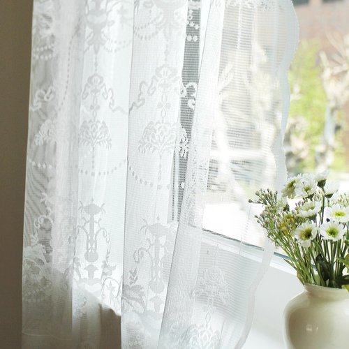 TEMU 1개 우아한 화이트 폴카 도트 시스루 커튼, 폼폼 자수 - 부드럽고 빛을 통과하는 폴리에스터, 설치가 쉬움, 거실, 침실, 사무실 장식용 현대적인 스타일, 로드 포켓 탑
