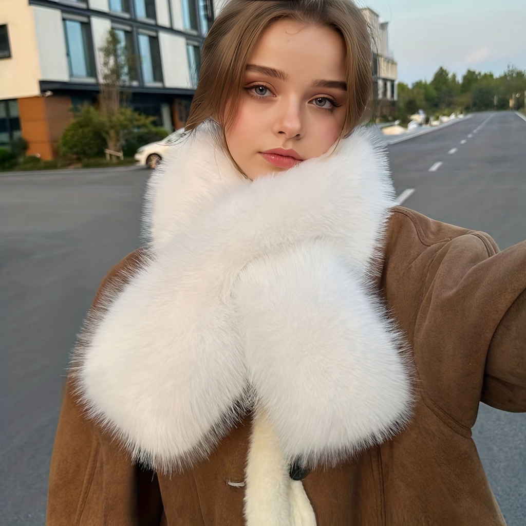 TEMU 여성용 럭셔리 플러시 스카프 - 겨울용 부드럽고 따뜻한 방풍 및 방한 비탄성 인조 퍼 칼라, 손세탁 가능한 솔리드 컬러 - 성숙한 자리 및 야외 착용에 우아함