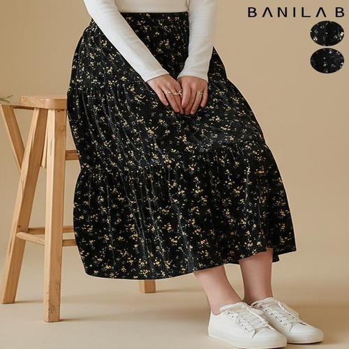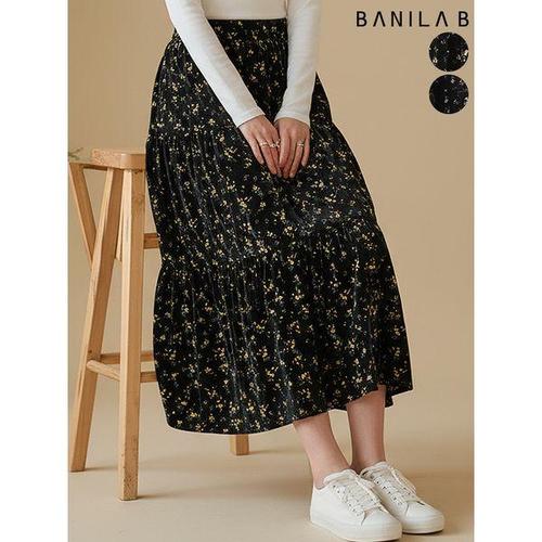 [바닐라비]여성 플라워패턴 벨벳 롱스커트