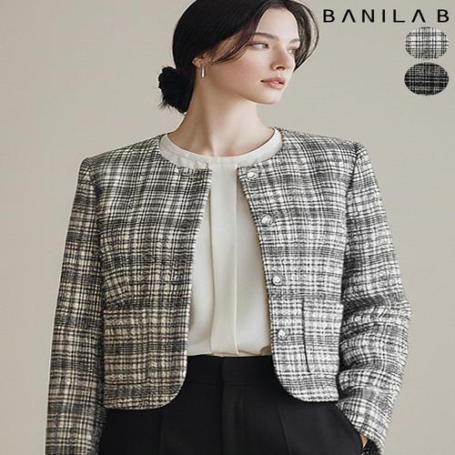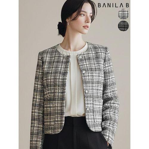 [바닐라비]여성 라운드넥 체크 트위드자켓