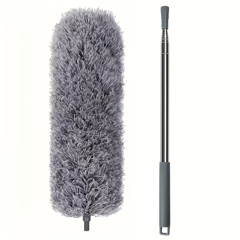 TEMU 확장형 텔레스코픽 폴 & 구부러지는 헤드 포함 마이크로파이버 먼지떨이 - 고강도 스테인리스 청소봉, 세탁 가능한 먼지떨이 브러시, 높은 천장, 천장 선풍기, 블라인드, 차량 내부, 바닥, 벽 청소용 - 무료 제공 (호환 가능)