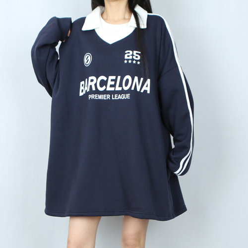 파라노말샵 / (남녀공용) 바르셀로나 카라 배색 오버핏 기모 맨투맨