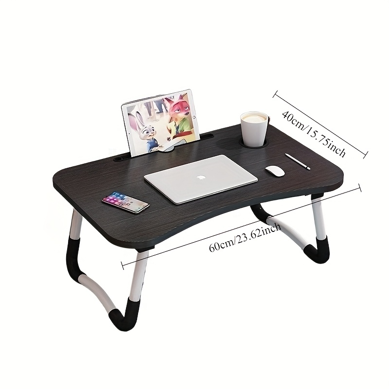 TEMU 컵 홀더가 있는 휴대용 접이식 노트북 데스크 - 가벼운 컴팩트 디자인, 침대/소파/바닥 사용 가능, 인체공학적 각도 조절, 보관 공간 및 사이드 포켓 포함, 내구성 있는 구조, 현대적인 스타일의 소파 액세서리, 튼튼한 다리 지지대