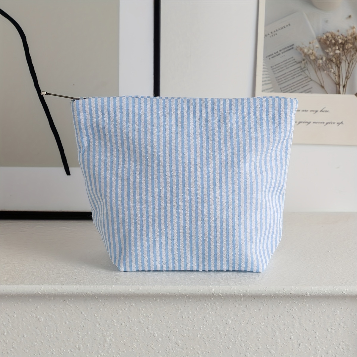 TEMU 버블 거즈 메이크업 가방, 여성용 휴대용 화장품 보관 파우치. 심플하고 스타일리시한 디자인으로, 외출하는 아름다운 여성들을 위한 필수 아이템입니다.