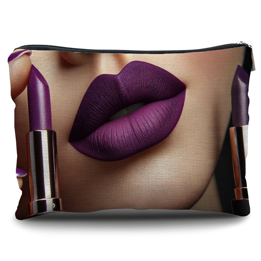 TEMU 고급스러운 딥 퍼플 립스틱 디자인의 휴대용 린넨 메이크업 가방. 재사용 가능하며 여성에게 완벽한 아이템입니다. 지퍼가 달린 이 야외 필수품 수납 파우치는 생일, 크리스마스 또는 새해를 위한 개인화된 선물로 적합합니다.|린넨|립스틱