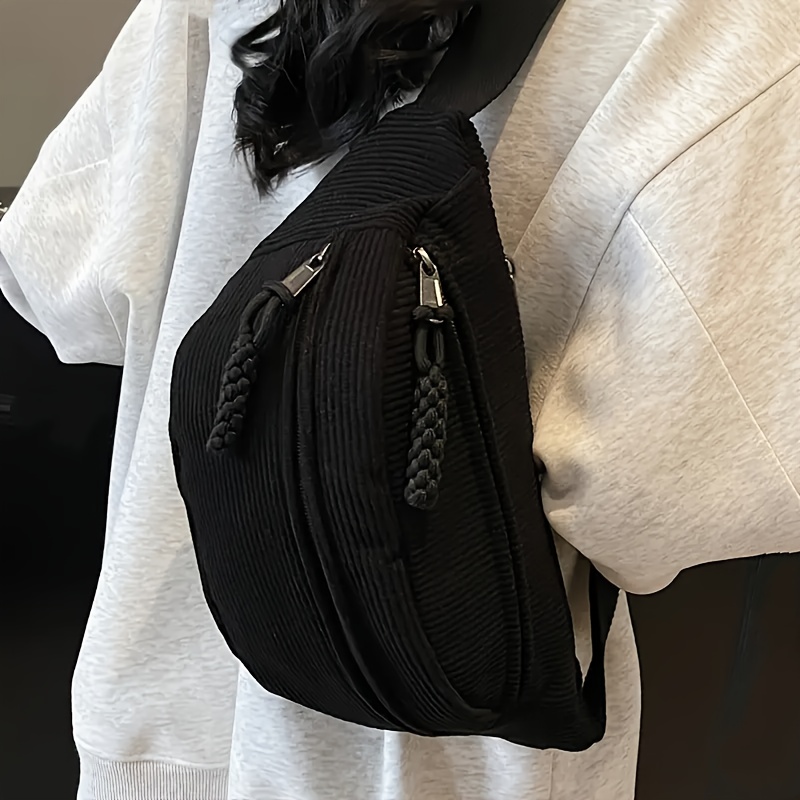 TEMU 빈티지 코듀로이 여성 웨이스트 백, 대용량, 원숄더백 또는 크로스바디 착용 가능, 조절 가능한 스트랩, 다중 지퍼 포켓 특징, 쇼핑, 여행 및 학생용 신학기 시즌에 적합