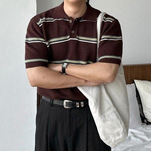 [피팅남]남자 임제 오버핏 여름 스트라이프 반팔 카라 니트