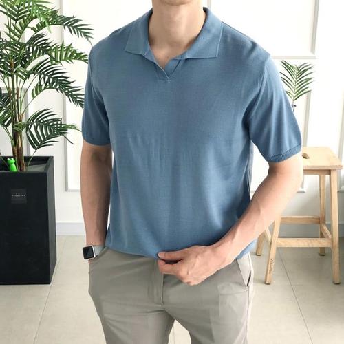 남자 여름 코헨 반집업 카라 반팔 니트티 SG-KNH-Q014-네이비
