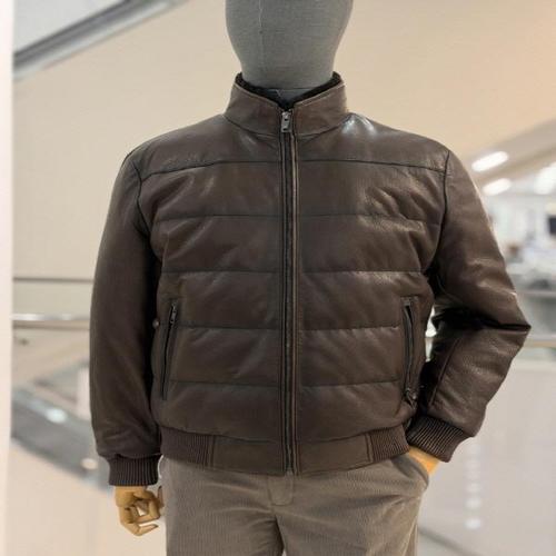 [바쏘옴므]WSZ4-UB14 카키그레이 구스다운 가죽 숏패딩 점퍼
