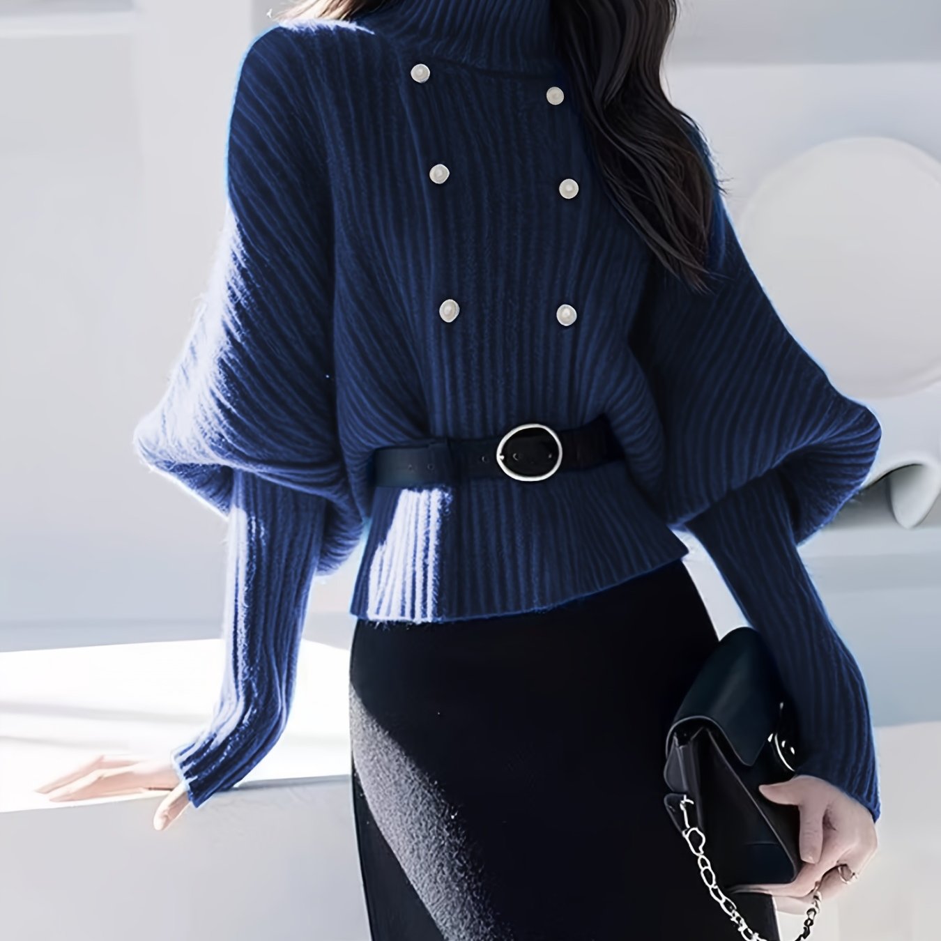 TEMU 여성용 우아한 하이넥 스웨터 - 오피스에서 파티까지 시크한 더블 버튼 앞면 스웨터, 루즈핏 긴소매 블라우스 (가을/겨울), 프로페셔널 & 포멀 행사 - 여성 의류, 스웨터, 겨울 의류, 세련된 스타일, 가을 여성의류, 여성의류, 가을여성옷, 여성니트, 여성상의, 여성블라우스