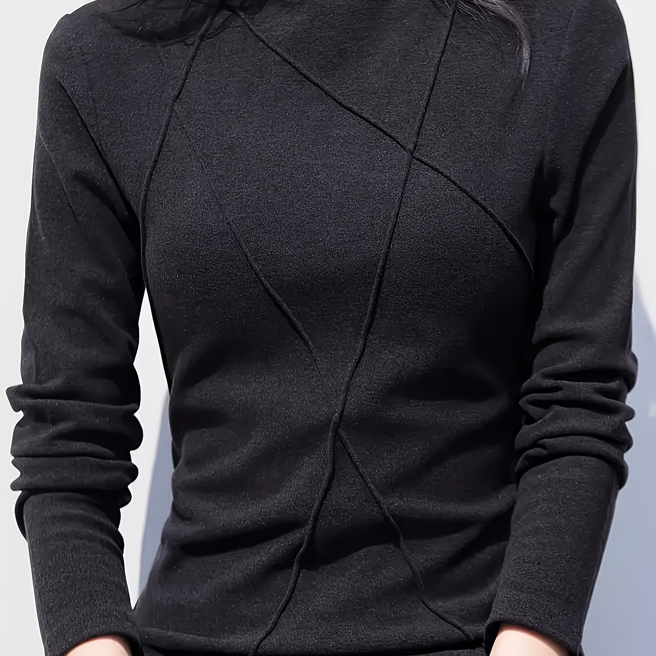 TEMU 여성용 우아한 긴팔 리브드 스웨터 - 하이넥, 슬림핏, 따뜻한 풀오버, 솔리드 컬러와 플리스 안감, 가을/겨울에 완벽한 스타일, 우아한 레이어링 피스, 우아한 스웨터 | 우아한 스타일 | 리브드 텍스처