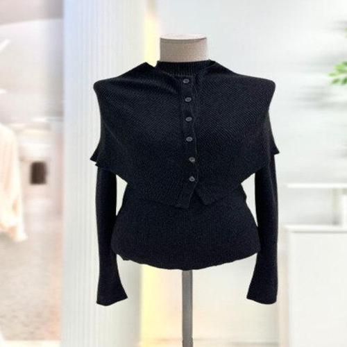 [스타일리쉬바이피클]페미닌 펀칭 니트 슬림 탑 가디건 울세트